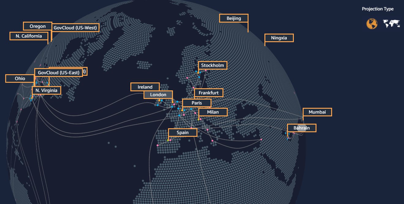 https://infrastructure.aws/На ней можно увидеть связи между ДЦ, расположение этих ЦОД и где искать мелкие Point Of Presence (Это ЦОД с ограниченным количеством возможностей, но улучшающий качество сервисов для удаленных клиентов).