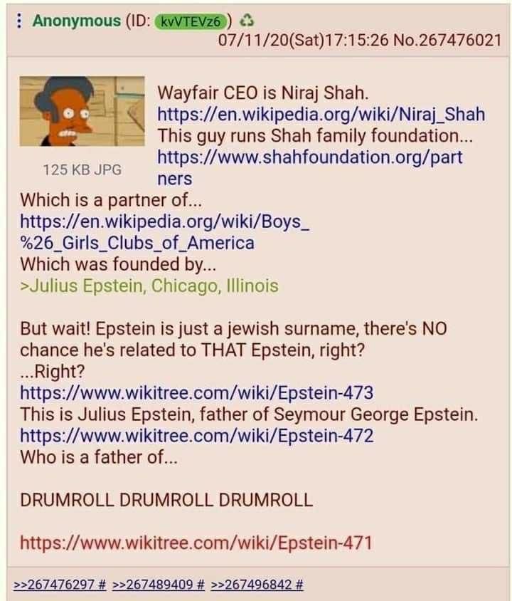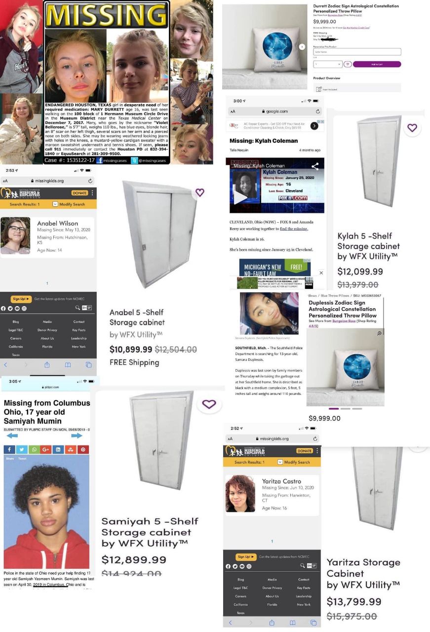 А Wayfair-gate тут уже обуждали? Американскцю "Икею" поймали на торговле похищенными детьми через свой онлайн-шоп. Сверхдорогие шкафы, одинаковые, но с разными именами, соответствующими пропавшим детям. Как только в Твиттере подняли бучу, Wayfair все подтер и объяснил "системным сбоем".