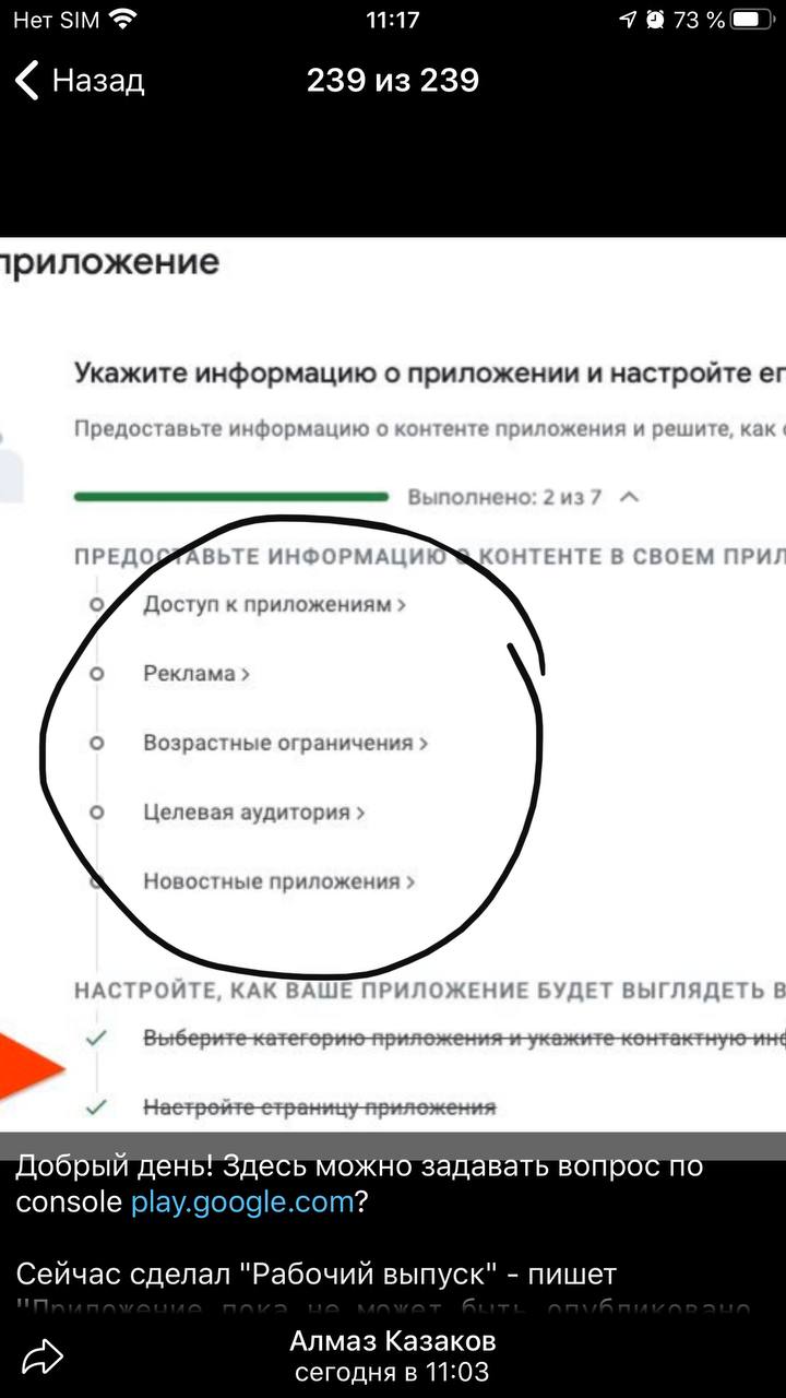 "Приложение пока не может быть опубликовано. Выполните действия, перечисленные на панели управления."