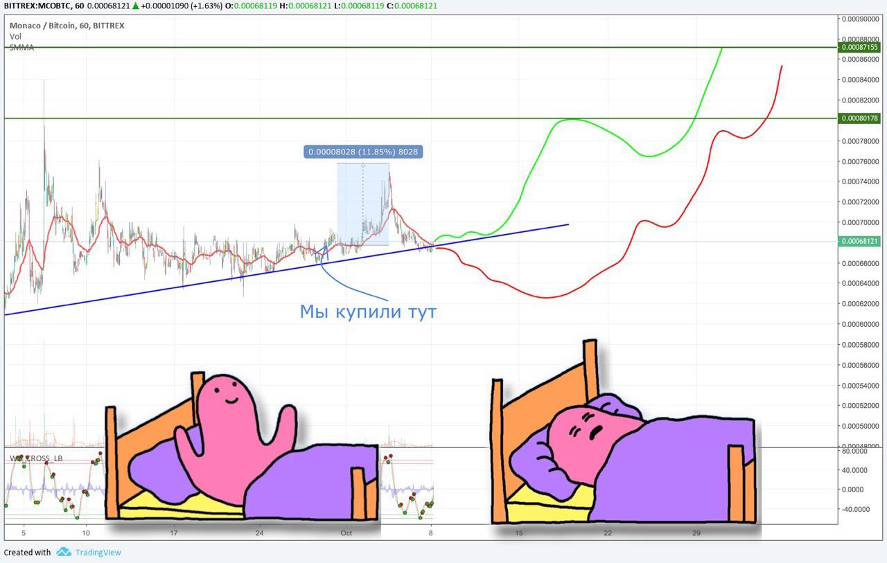 Зеленый сетап - Возвращение в красный коридор, самый лучший вариант из всех. Можно будет взять по супер дешевой цене и продать на 20% дороже минимум. Вариант подойдет для всех и даже самых маленьких инвесторов.