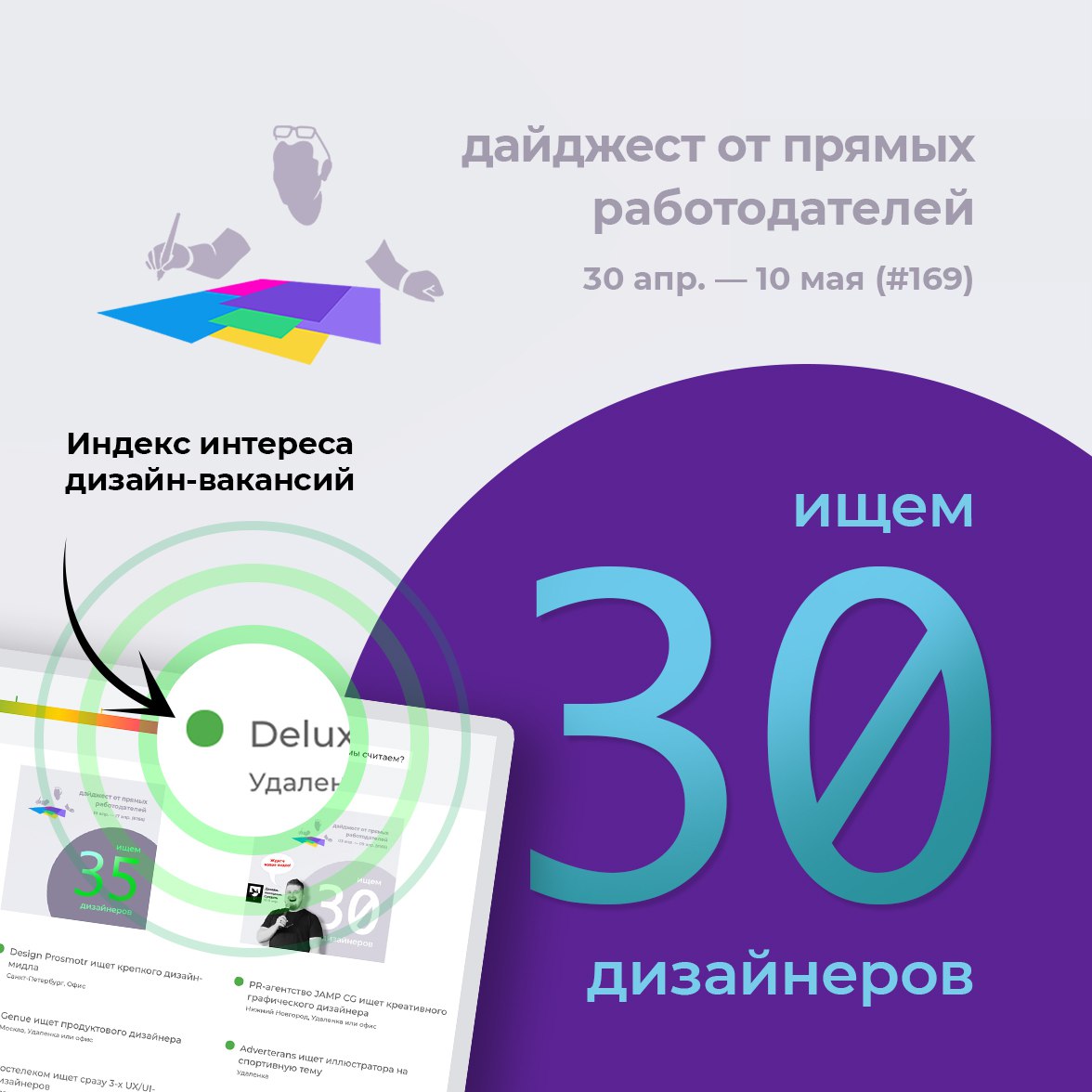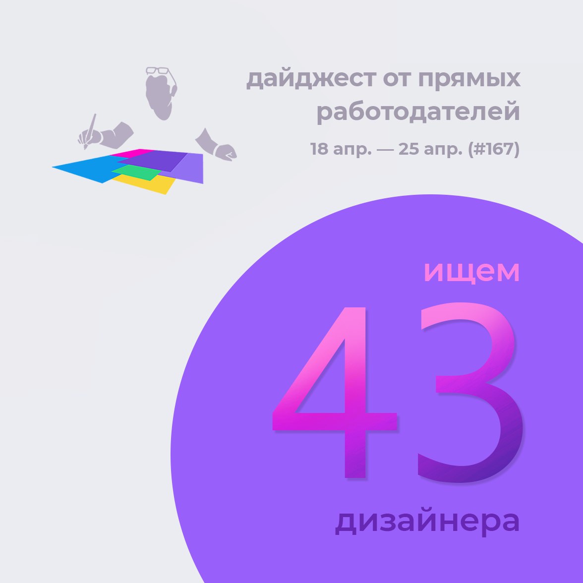 P/S: Пару слов для новичков: всего у нас 6 дизайн-пабликов посвященных дизайн-вакансиям. Наши клиенты знают нас отлично уже много лет. Поэтому вакансии всегда оригинальные и свежие 🚀Если у вас есть вопросы по клиентам — задайте их прямо в чате нашего канала.