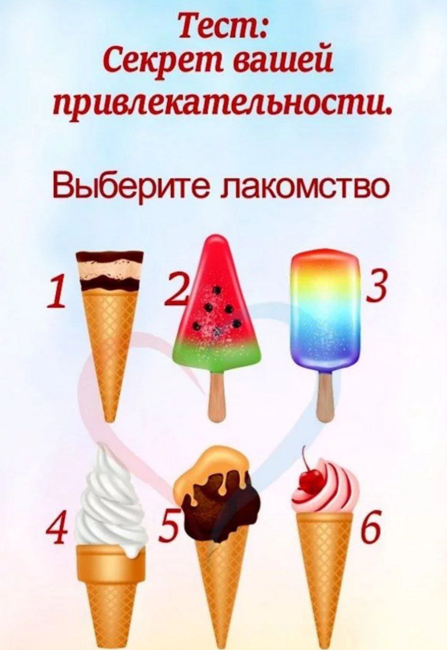 #Тест – Узнайте секрет вашей привлекательности – Выберите лакомство ⤵️ ⤵️ ⤵️