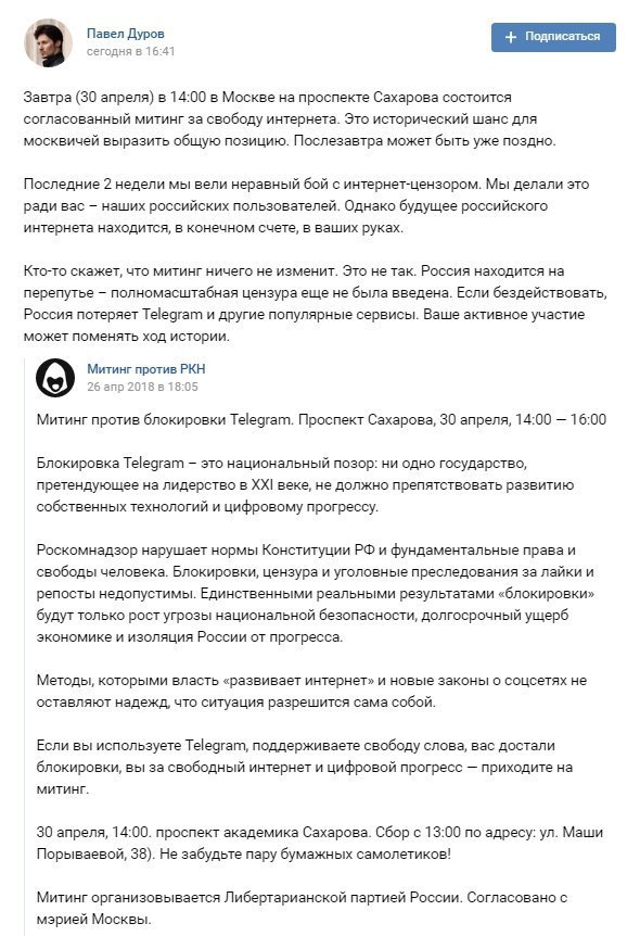 Впрочем, согласно материалам дела, ставшим доступными Republic.ru в октябре, для координации теракта в большей степени использовался не Telegram, а WhatsApp.» – пишет Дуров в ВК.
