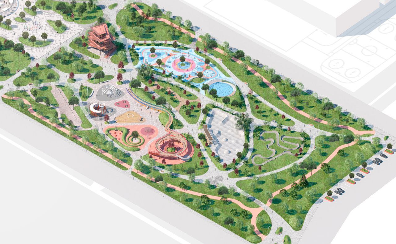 По задумке авторов, территория будущего парка будет разделена на зону отдыха, пикников, проведения мероприятий, многофункциональную детскую и спортивную площадки.