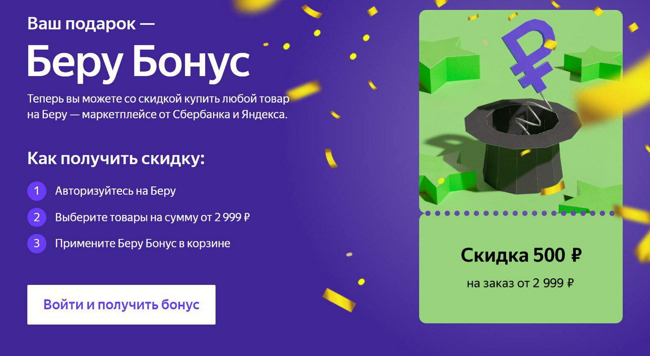 Беру – промокод на скидку 500₽ при покупке от 2999₽
