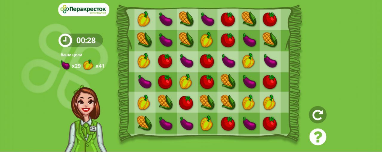 Магазин Перекресток запустил игру, в которой можно выиграть множество различных призов, таких как скидки на покупки, бесплатные товары, подписки и прочее. За 30 секунд собирайте линии из овощей и набирайте нужное количество баллов. Если у вас всё получается, то вам вручат промокод и часть пазла. Играть можно 1 раз в день с аккаунта.