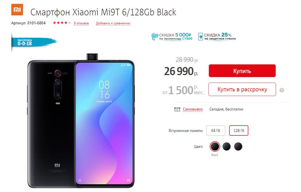 Отличный смартфон с большим AMOLED экраном 6.5 дюймов. Процессор Mediatek Helio P90, камера 48+8+2+2 Мп, оперативная память 8 Гб, встроенная 128 Гб. Везде от 25990₽.