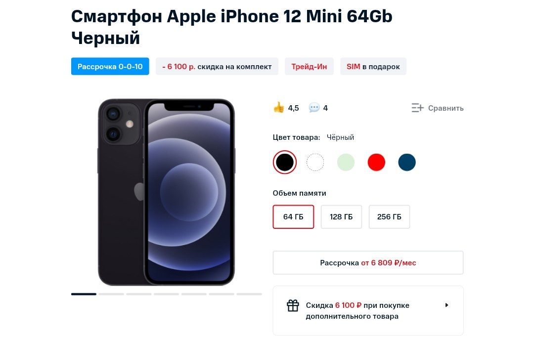 Cмартфон Apple iPhone 12 Mini 64Gb за 61990₽ в МТС с аксессуаром!Популярная модель по самой выгодной цене при покупке аксессуаров на 500₽. Скидка действует только до 02:00 по МСК, успевай! Везде от 68000₽.