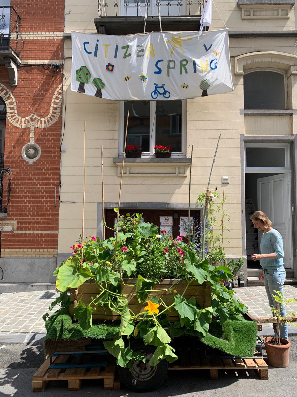 Центр города плотный, иногда у домов нет дворов. Один из жителей решил устроить сад напротив ворот своего дома — это заезд, он им не пользуется, а зелень под окном куда полезнее асфальта.