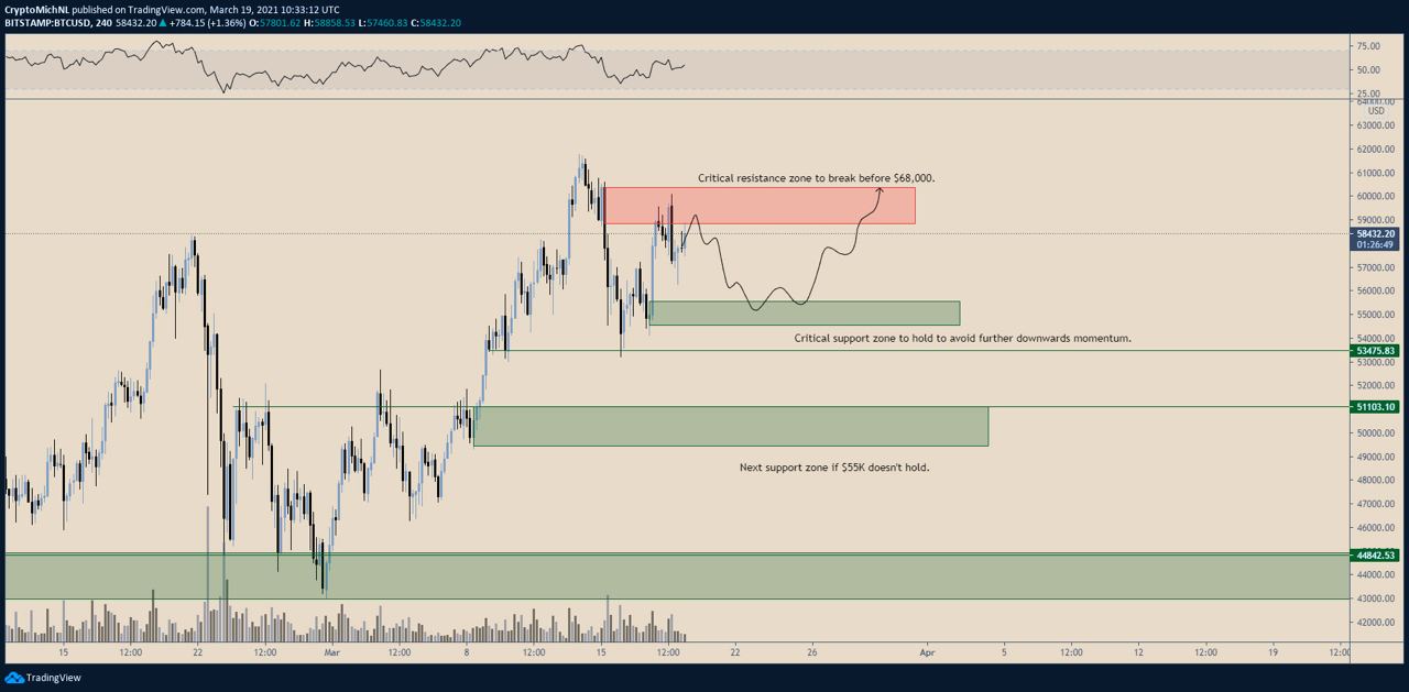 Во вторник биткоин преодолел сильное сопротивление на уровне $52 тыс., чем побудил аналитика Filbfilb наложить на график уровни Фибоначчи и наметить цели дальнейшего движения — $70 тыс. и $95 тыс. Тогда это прозвучало излишне оптимистично, а теперь выглядит вполне оправданным прогнозом.