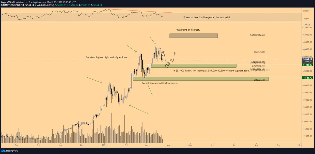Курс биткоина (BTC) упал на 20% после того как достиг $62 тыс. в середине марта. Трейдер Михаэль ван де Поппе (Michaël van de Poppe), имеющий более 167 тыс. подписчиков в твиттере, проанализировал ситуацию.