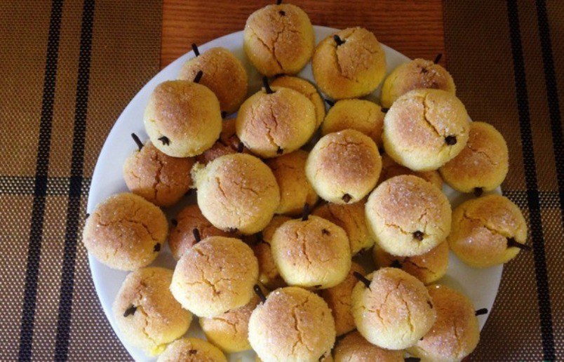 Чудесное лакомство, которое особенно восхитит поклонников рассыпчатого печенья. Вкус великолепный, как и подача. Готовое печенье имеет ровный желтый цвет, а благодаря оформлению бутонами гвоздики действительно выглядит как яблочки. Такое угощение не стыдно и дорогим гостям подать, неудивительно, что в семье его пекут три поколения подряд. Делюсь рецептом.