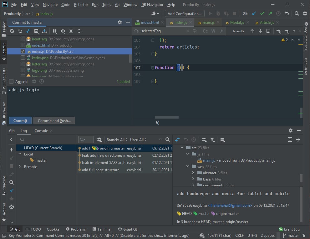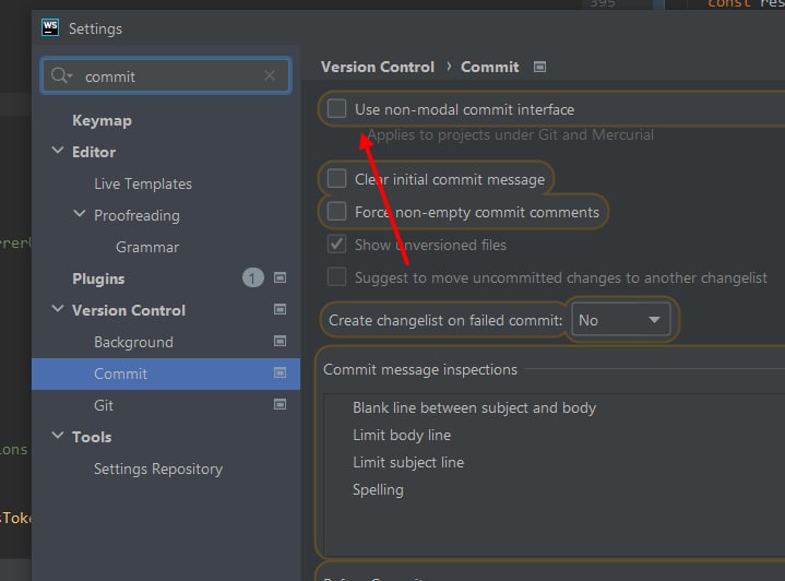 конечно, не webstorm, но дело не в этом) Несколько версий назад JetBrains ввели новый неблокирующий интерфейс для коммитов и заодно перенесли некоторые привычные мне вещи. Я слишком часто ими пользовался, чтобы не вернуть старый интерфейс)
