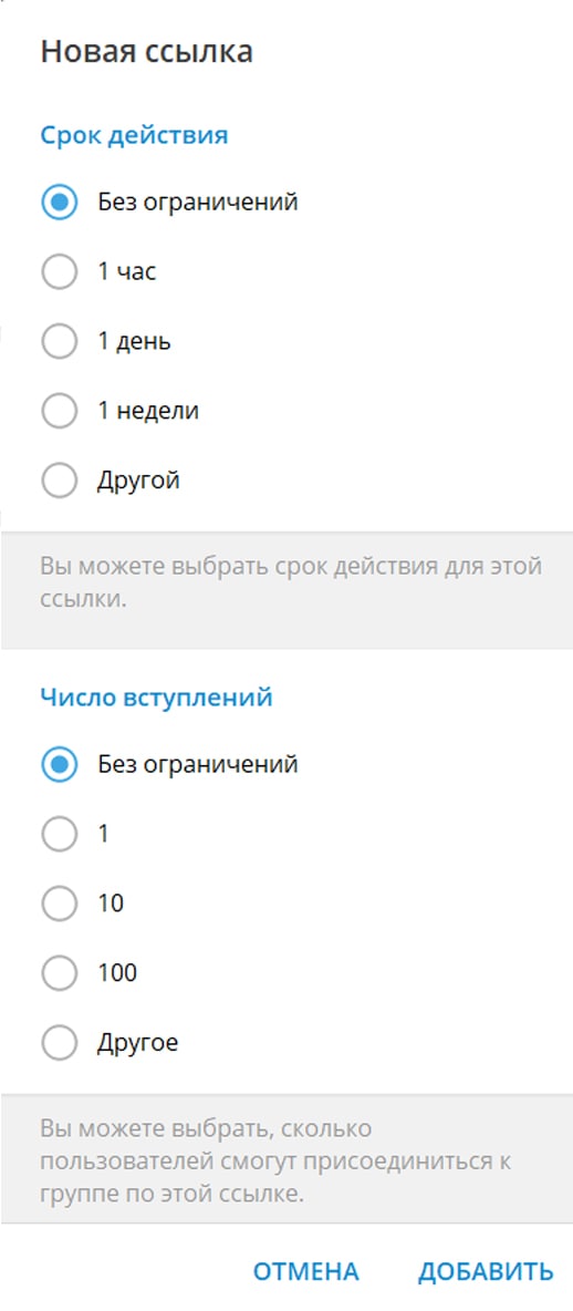 Новые пригласительные ссылки для групп и каналов• Администраторы могут настроить, как долго будет работать пригласительная ссылка или сколько человек смогут по ней вступить.