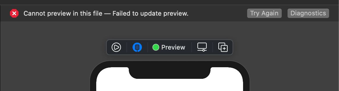 Добрый вечер! Наткнулся на такую проблему, swiftui preview не работает на физическом айфоне. В инете поискал, но не смог найти решение. Можете пожалуйста подсказать как решить данную проблему?
