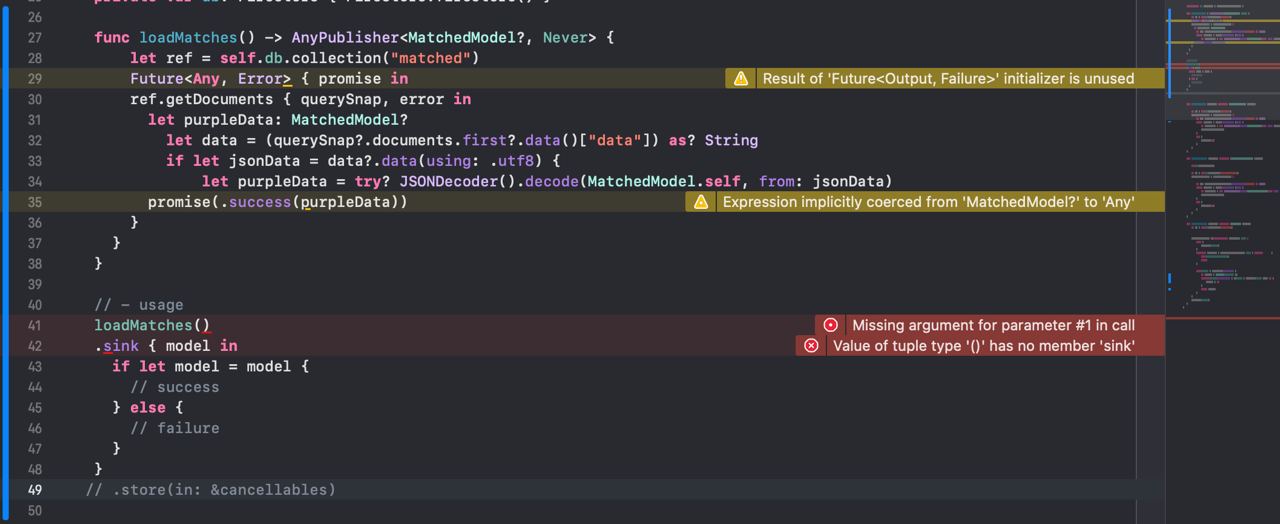 посмотрите еще раз мое сообщение, я отредактировал функцию, а так почти все верно, для Future указывать template параметры не нужно, они должны сами из сигнатуры функции определиться компилятором. Чаще всего template при использовании Combine действительно нужно указывать в случае больших combine cycle-ов состоящих из нескольких операторов