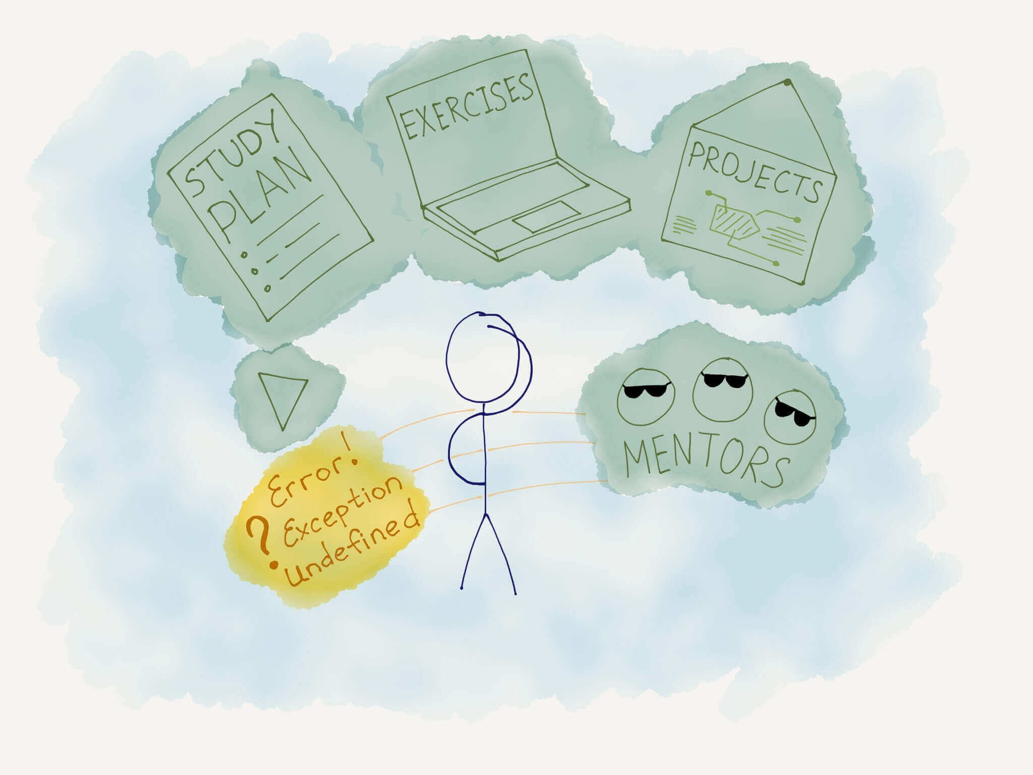 https://ru.hexlet.io/ . На платном тарифе - включен менторинг. Всегда легче изучать профессию, если у тебя есть у кого спросить совета. Этот сервис ориентирован на людей, входящих в профессию. И у них также есть комьюнити в Слаке, где можно спросить в какую сторону развиваться, и получить обратную связь от людей, которые также начинали с нуля. Начать там можно с бесплатных курсов таких как - "Жизнь программиста" и "Основы программирования", которые дадут вам понимание - будет ли вам интересна профессия программиста или нет.
