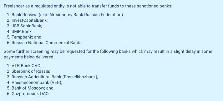 Вот например список банков с фрилансера - под санкциями