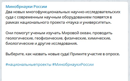 Два новых многофункциональных научно-исследовательских суда с современным научным оборудованием появятся в рамках национального проекта «Наука и университеты».Научные суды? Что они исследовать собираются и кого судить? Это вообще законно? В недоумении читаю дальше -