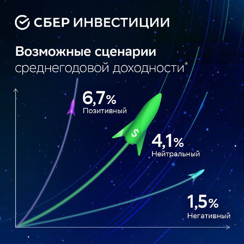 4. Для стратегии «Долларовые облигации» финансисты Сбера рассчитали три возможных сценария доходности: позитивный, нейтральный и негативный. Из них наиболее вероятен нейтральный. Так, доходность в случае реализации нейтрального сценария может составить +4,1% в долларах США, позитивного +6,7%, а негативного +1,5% годовых. При этом точная доходность не устанавливается – она может быть больше или меньше указанной величины. Инвестирование осуществляется путём приобретения инвестиционных паёв ОПИФ под управлением Сбер Управление Активами.