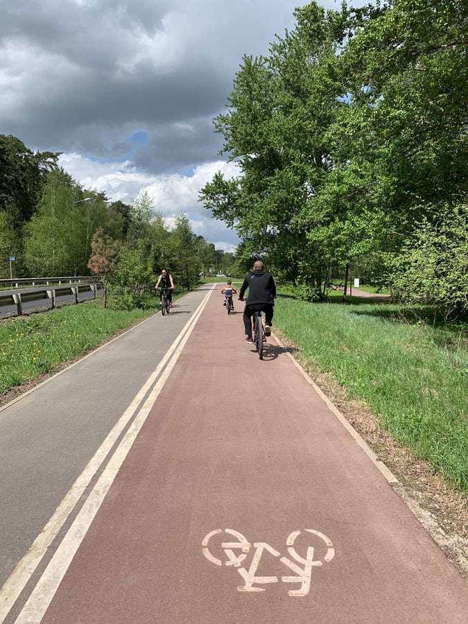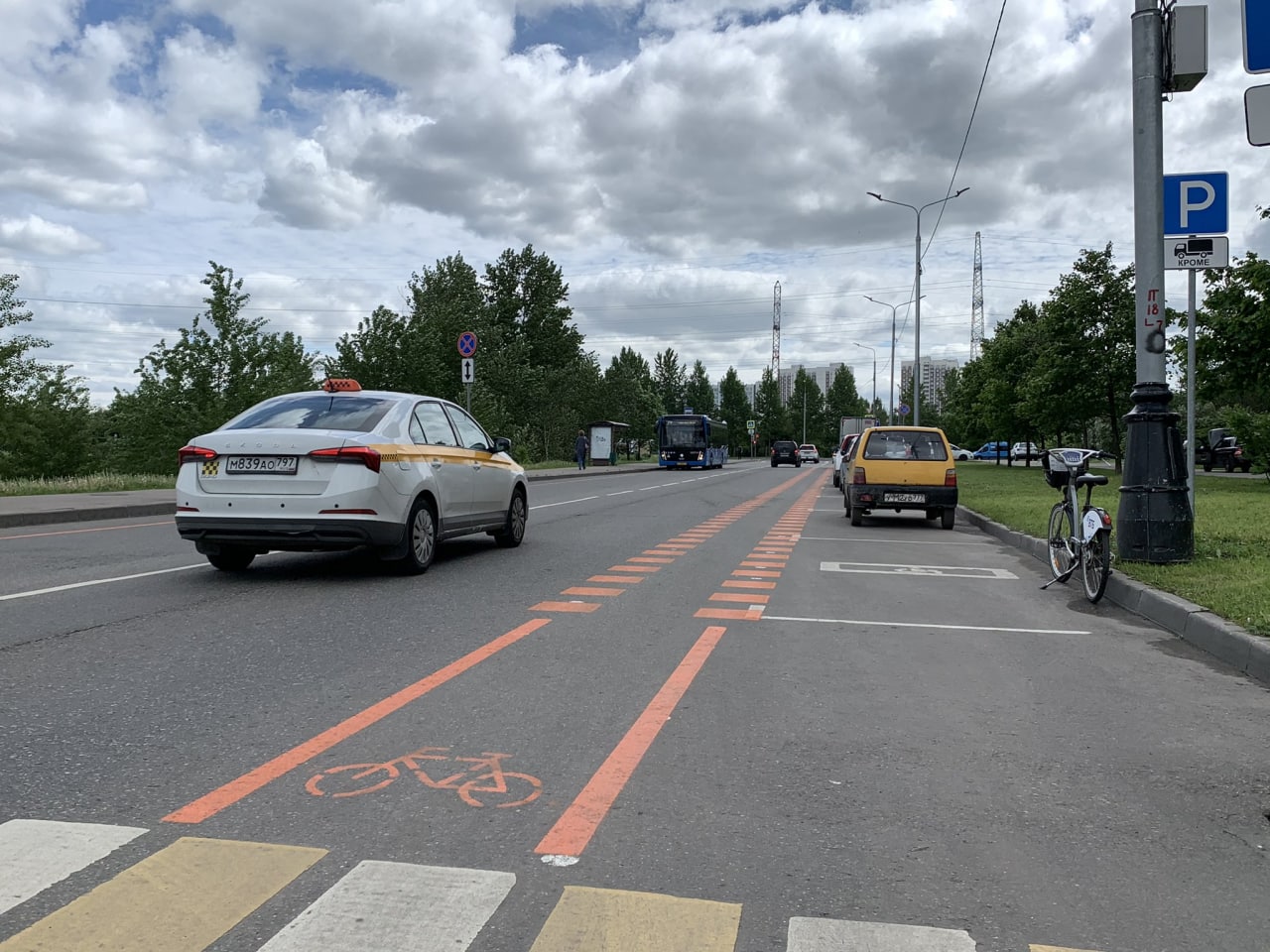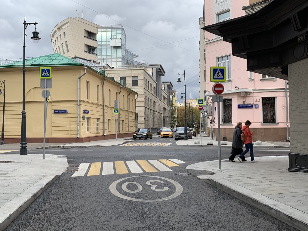 1.Тротуар, куда приходит велополоса, изначально предполагался с велодорожкой, но её выкинули из проекта.