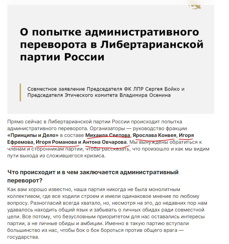 Точно также, в любой момент какой-нибудь Понасенков может внезапно объявить: "Я/мы есть труЪ Либертарианская партия, вступайте к нам".