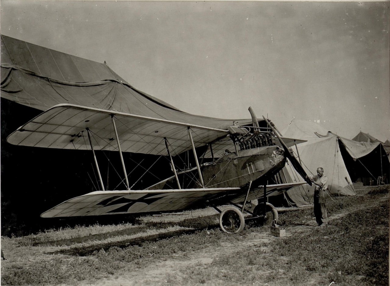 Механик обрабатывает поверхность одной из лопастей пропеллера аэроплана рубанком. Это не значит, что на заводе был брак. Просто в процессе эксплуатации деревянные винты так или иначе получали повреждения и их приходилось в полевых условиях устранять. Самолёт — разведывательный биплан Albatros B.III Имперских военно-воздушных сил #Германия. #ПерваяМировая, полевой аэродром вблизи городка Нараев (сегодня — Тернопольская область, Украина), 1917 год.