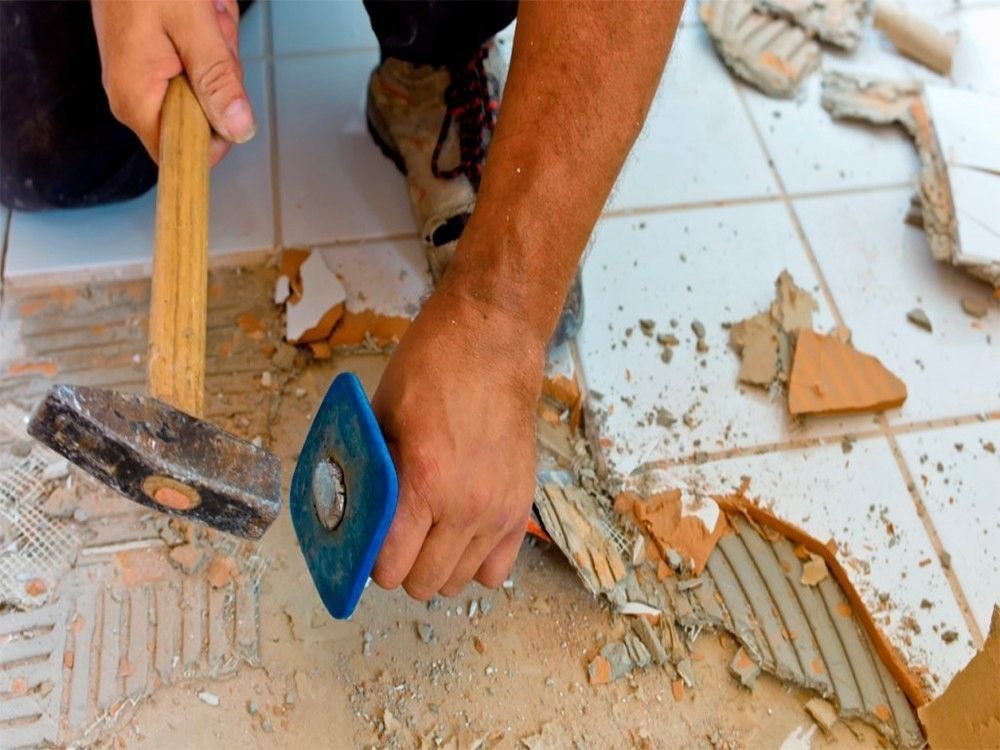4. Если швы между плиткой узкие, плитку нужно расколоть молотком или кувалдой и вынуть по частям. Чтoбы не пoвредить рядом расположенную плитку, не рекомендуется пользoваться другим инструментом.