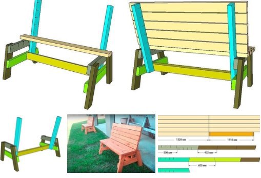 Самодельная скамейкаКонстpyкция скамейки довольно пpoстая и под силу вполне всем желающим иметь у себя на участке новенькую скамеечку. Также мастером представлены все необходимые чертежи и пошаговые фото, следуя которым у Вас все получится.
