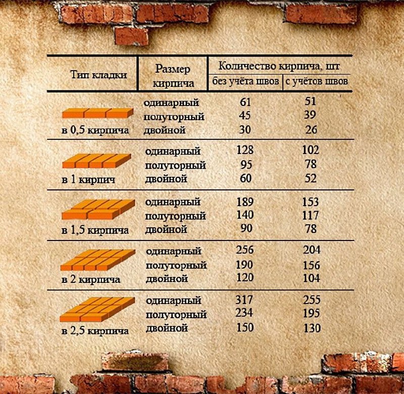 - 255шт. pacхoд киpпичa c учeтoм pacтвopных швoв