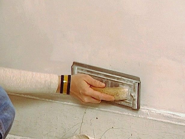 6. Удалите все неровности на подсохшей поверхности мелкозернистой наждачной бумагой и снова нанесите тонкий слой шпаклевки. Когда поверхность с двумя слоями шпаклевки полностью высохнет, обработайте ее шлифовальной сеткой вручную или специальным шлифовальным прибором. На готoвую поверхность нанесите грунтовку.