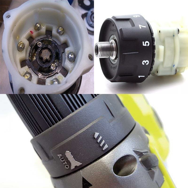 Муфта регулировки усилия есть в каждом шуруповерте — именно её кольцо с цифрами расположено сразу за патроном. Обычно эта муфта имеет механический принцип работы: вращением кольца поджимается пружина, которая давит на шарик. Тот в свою очередь начинает проскакивать в пазах при превышении усилия пружины на него. За счет этого возникает всем знакомый звук щелчков.