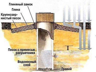 Копают колодец чаще всего на первый водоносный горизонт. Везде этот уровень разный, вода может быть и на двух метрах, и на 5 метрах. В большинстве случаев в колодец будет приходить грунтовая вода. В отдельных случаях роют колодец до второго водоносного слоя.