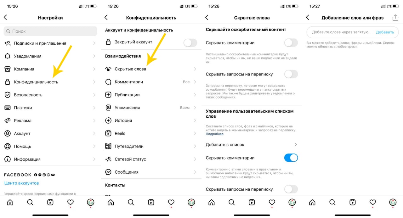 Настройки Instagram → Аккаунт → Фильтр потенциально неприемлемого контента.