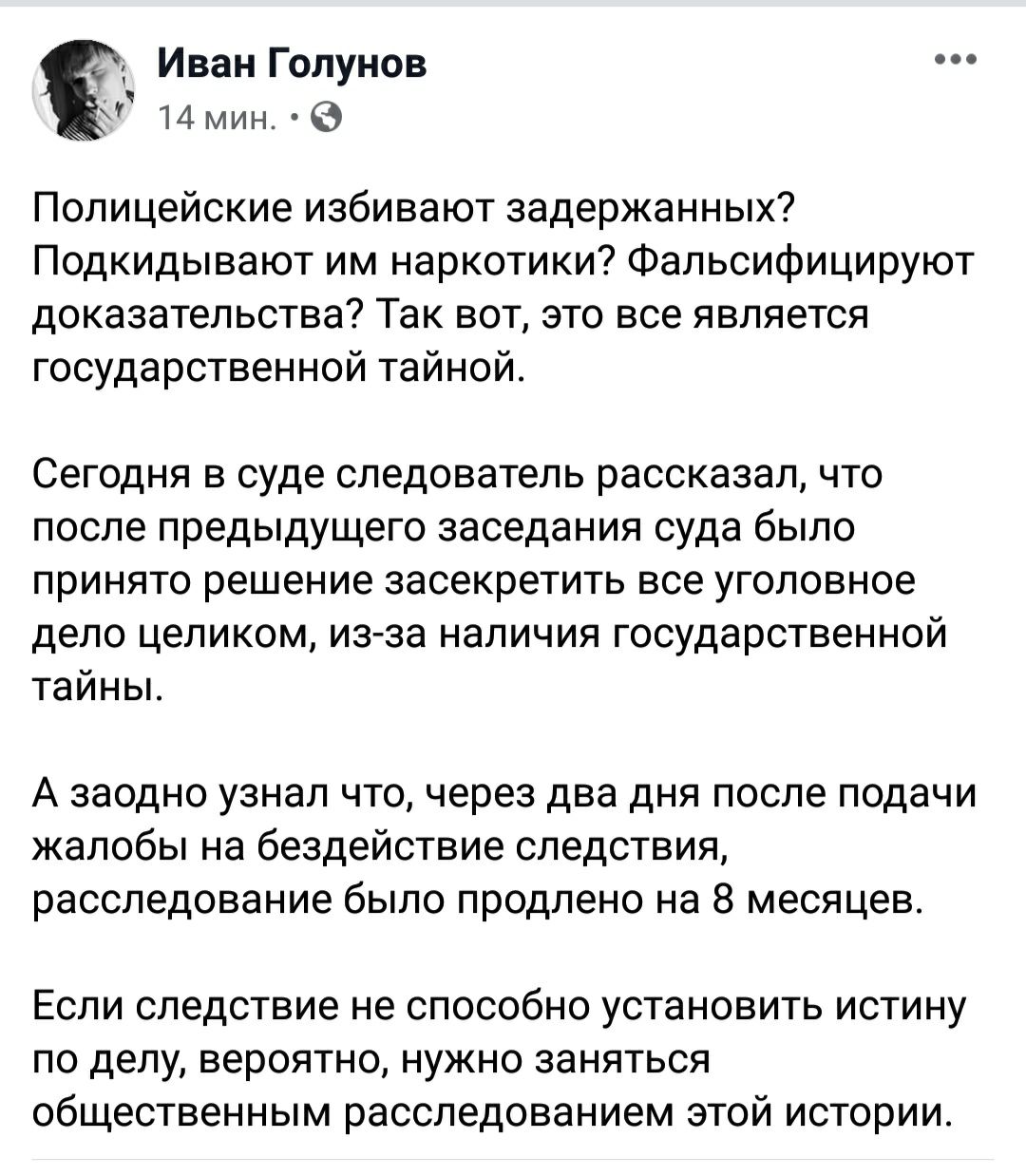 Следующие полчаса мы провели за совместным составлением моего объяснения на кляузу каких-то (я знаю каких) гандонов. Хотя кляуза эта затрагивала не меня, а совершенно постороннего человека, но речь там шла о моей идее Гдовского интернет-телевидения. И мне пришлось пояснять прокурорше района, что идея исключительно моя, что я представляю, каким должно быть местное ТВ, мне не нужны для этого частоты, лицензии, регистрации СМИ, и вообще шли бы вы все дружно нахуй. Впрочем, при женщине я этот профессиональный термин употреблять не стал.