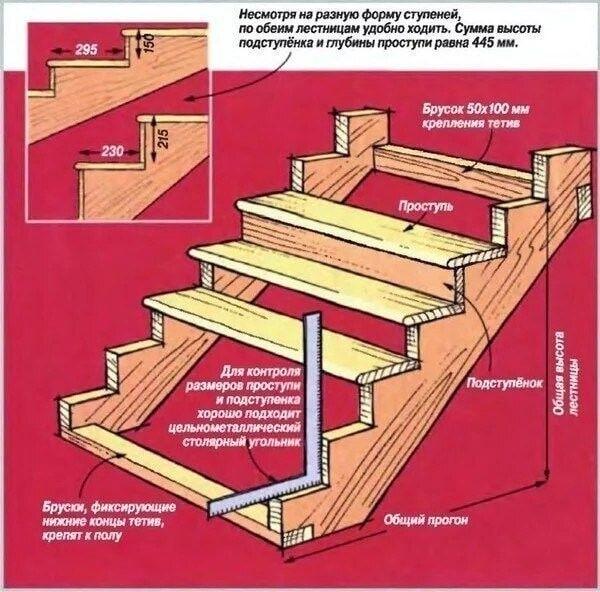 Ступени необходимо делать с небольшим уклоном, чтобы при выпадении осадков вода не скапливалась на поверхности.