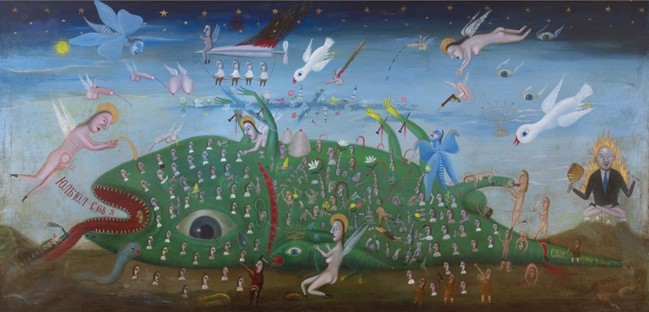 В творчестве Пурыгина множество отсылок к народным промыслам. Создавая лубочные изображения, художник использовал приемы, характерные для народного искусства, например, выделение масштабом главных персонажей или пародирование, «выворачивание наизнанку» как особый тип эпических трансформаций героев. Часто использовал форму складня – мифологической модели мира. И вообще, стилистически и сюжетно его картины напоминают иконы. Это неудивительно, особенно если помнить идею художника о создании Храма любви.
