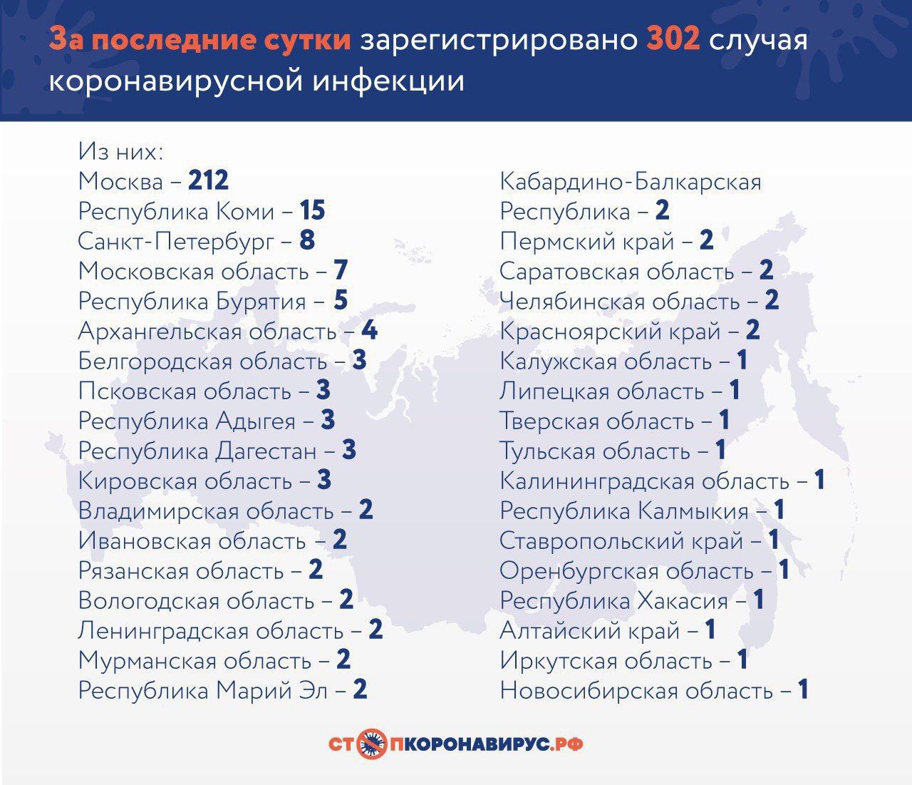 • 1836 случаев заражения в России (+302 за сутки), 1345 из них в Москве и МО