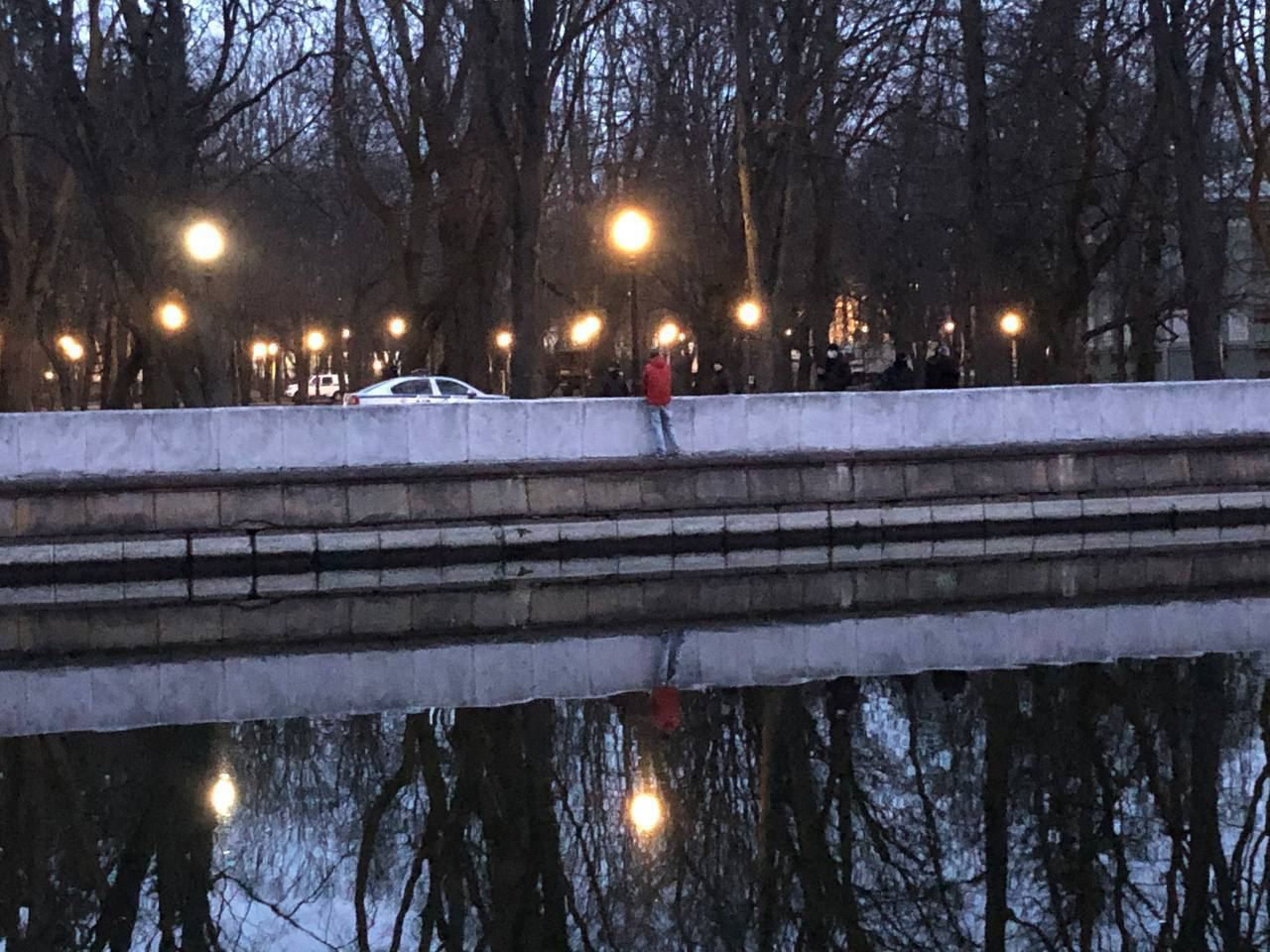 Дополнено: от тутбая «Очевидцы сообщают, что парня, который стоял в минском парке Марата Казея на бортике у Свислочи, сняли оттуда.