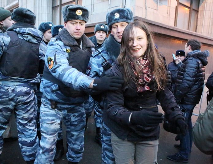 Задержание Анастасии ЗиновкинойСначала активисты отказались впускать ментов, но силовики пообещали, что в противном случае, приедет ОМОН и спилит дверь. Так как, такое уже случалось, Настя приняла решение "сдаться" и добровольно покинула квартиру.