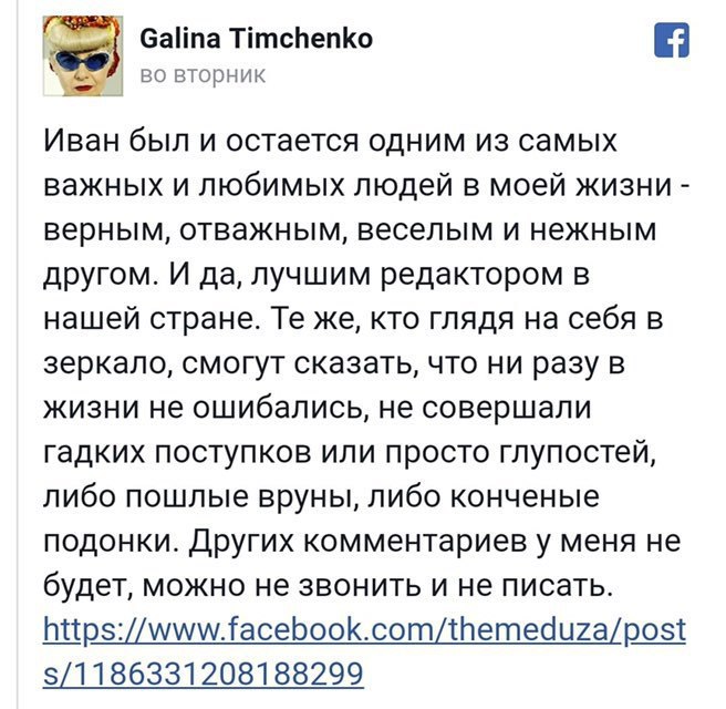 - А дальше с удивлением обнаружила, что даже те, кто чехвостил вполне за дело "Крымский мост", обсуждение кожи и рожи Маргариты Симоновны в неповторимом духе "Дома 2" и бабок на лавке вовсе не поддержали.
