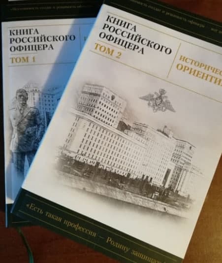 Уважаемые офицеры из одного из управлений ГШ ВС РФ передали в дар для библиотеки О.Л, экземпляр выпущенного 21 сентября 2021 года под эгидой НЦОУ ВС РФ 118-тысячным тиражом двухтомника "Книга российского офицера" примерно по 600 страниц в каждом томе.