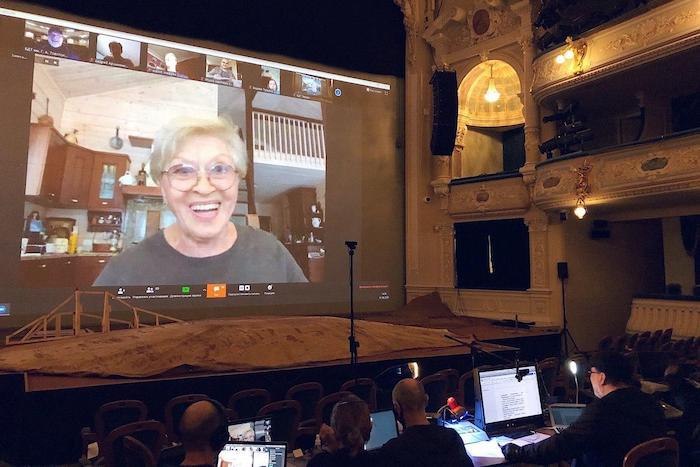 показывает онлайн-репетицию спектакля «Горе, ум, медиа», на которой артисты получают безмолвные указания режиссера