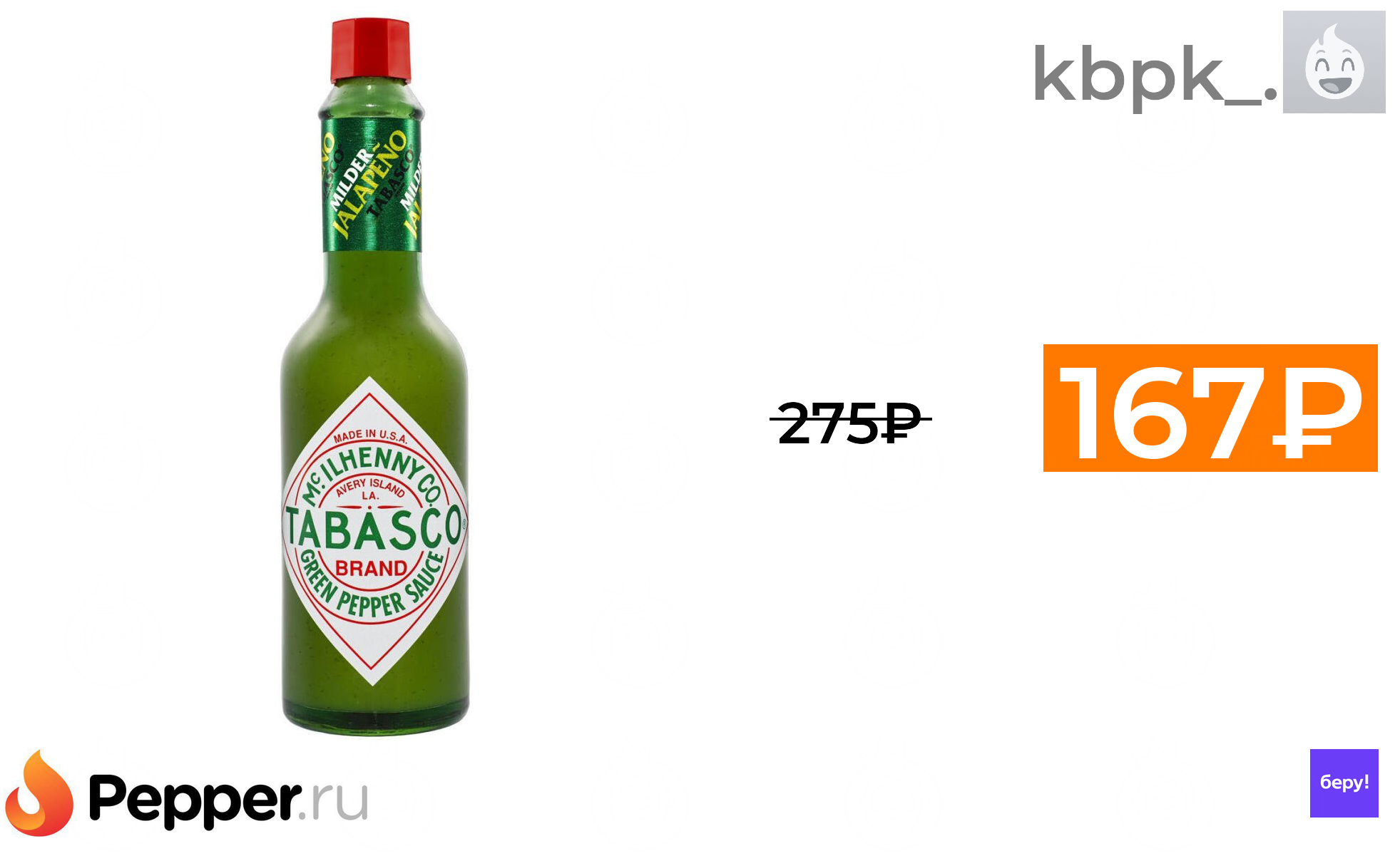 🔹Соус Tabasco Green jalapeño pepper, 60 мл 167₽ ❗️🔥(везде от 275₽)