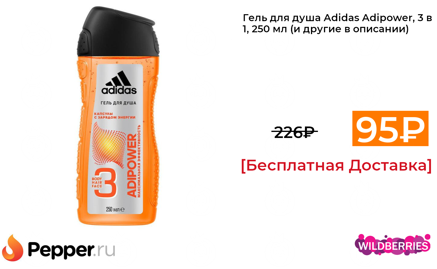 🔹Гель для душа Adidas Adipower, 3 в 1, 250 мл (и другие в описании) 95₽ ❗️🔥(везде от 226₽)