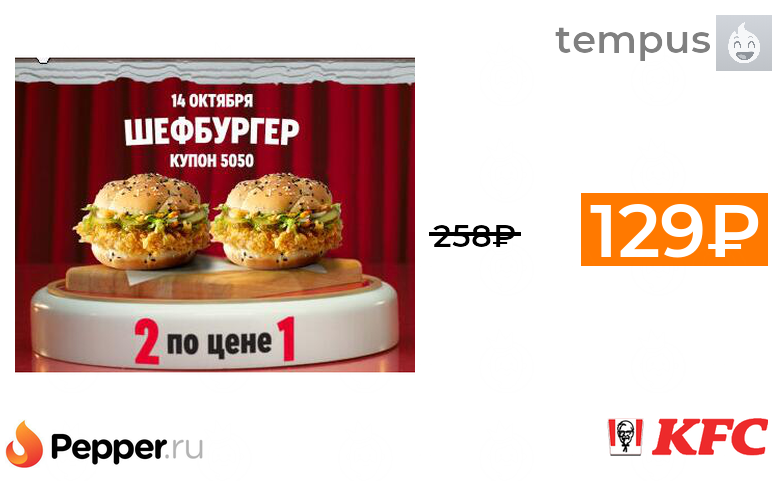 🔹[14.10] Два шефбургера по цене одного 129₽ ❗️🔥(везде от 258₽)