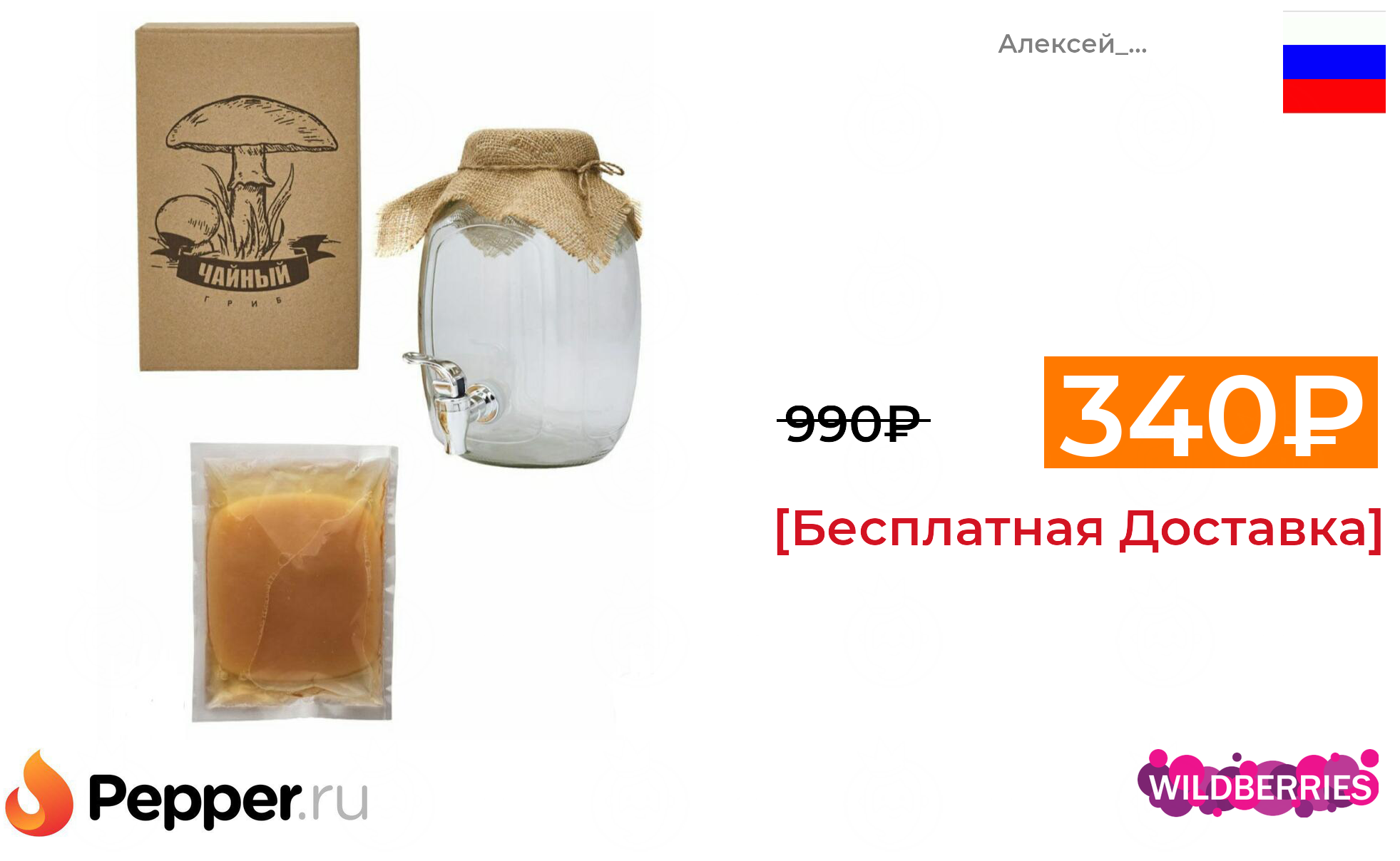 🔹Чайный гриб (комбуча) в комплекте с банкой и дозатором 340₽ ❗️🔥(везде от 990₽)