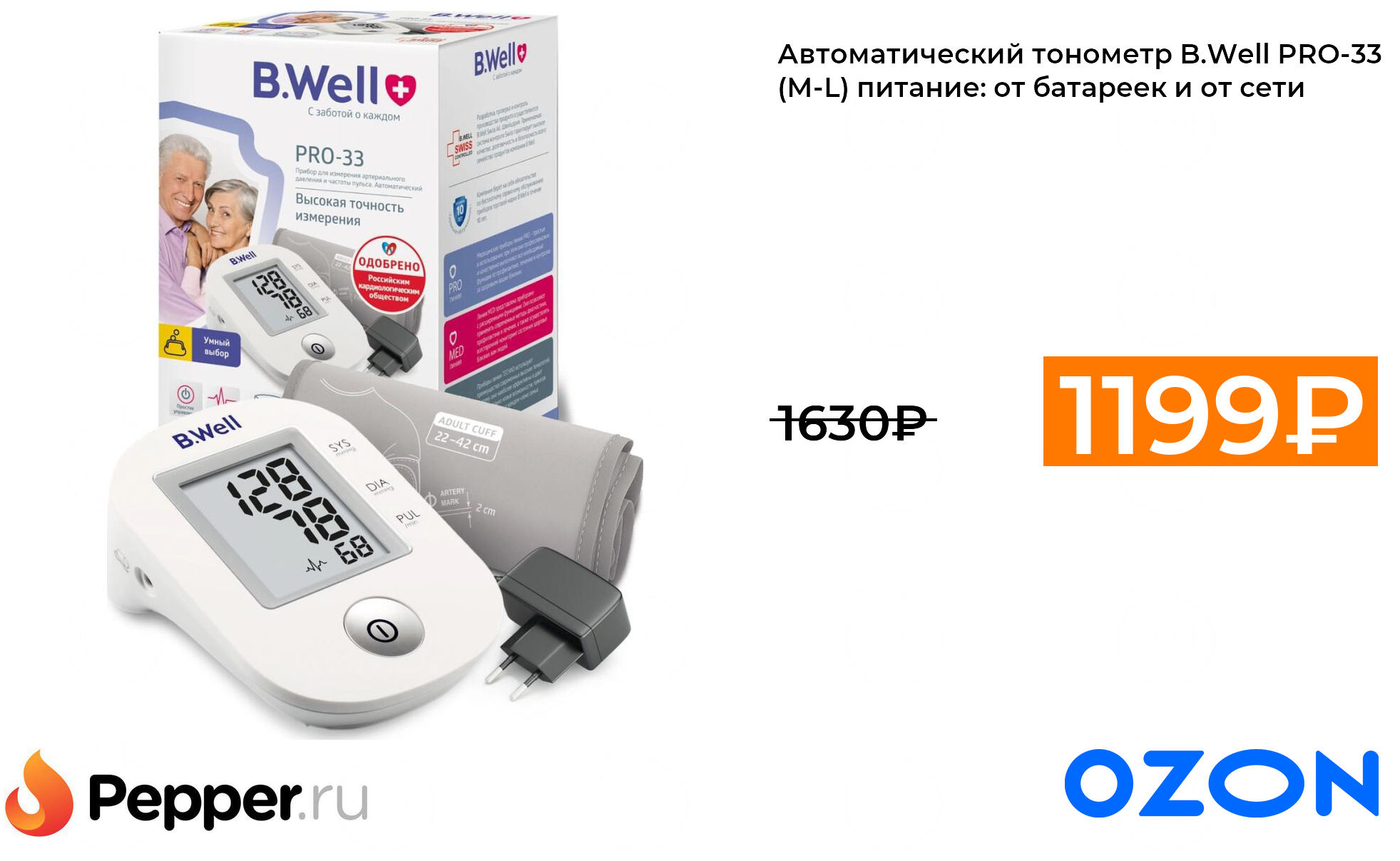 🔹Автоматический тонометр B.Well PRO-33 (М-L) питание: от батареек и от сети 1199₽ ❗️🔥(везде от 1630₽)
