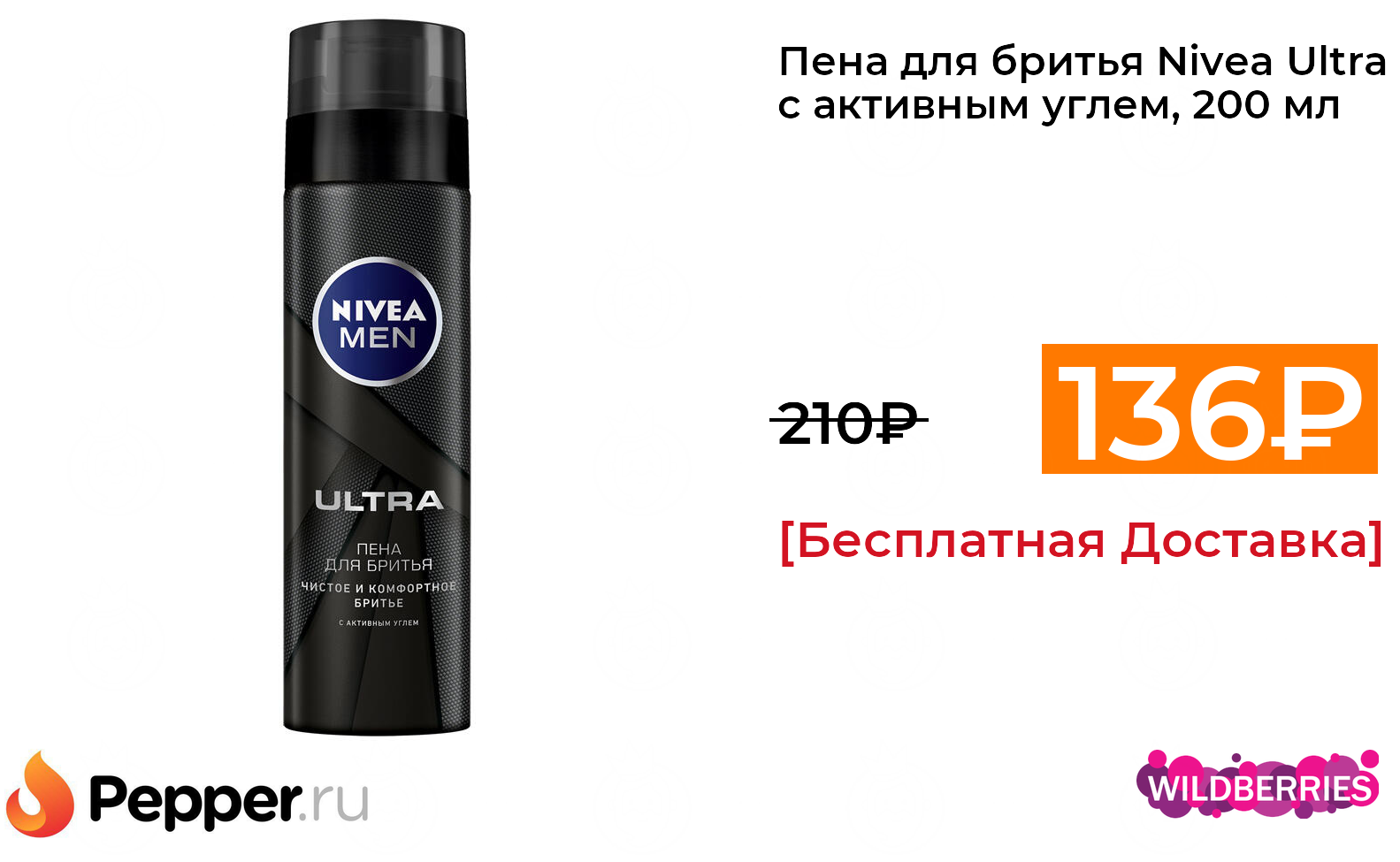 🔹Пена для бритья Nivea Ultra с активным углем, 200 мл 136₽ ❗️🔥(везде от 210₽)