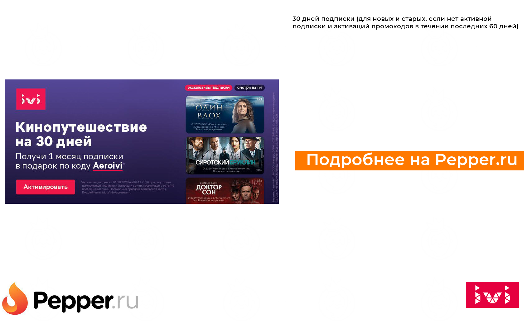 🔹30 дней подписки (для новых и старых, если нет активной подписки и активаций промокодов в течении последних 60 дней) ❗️🔥